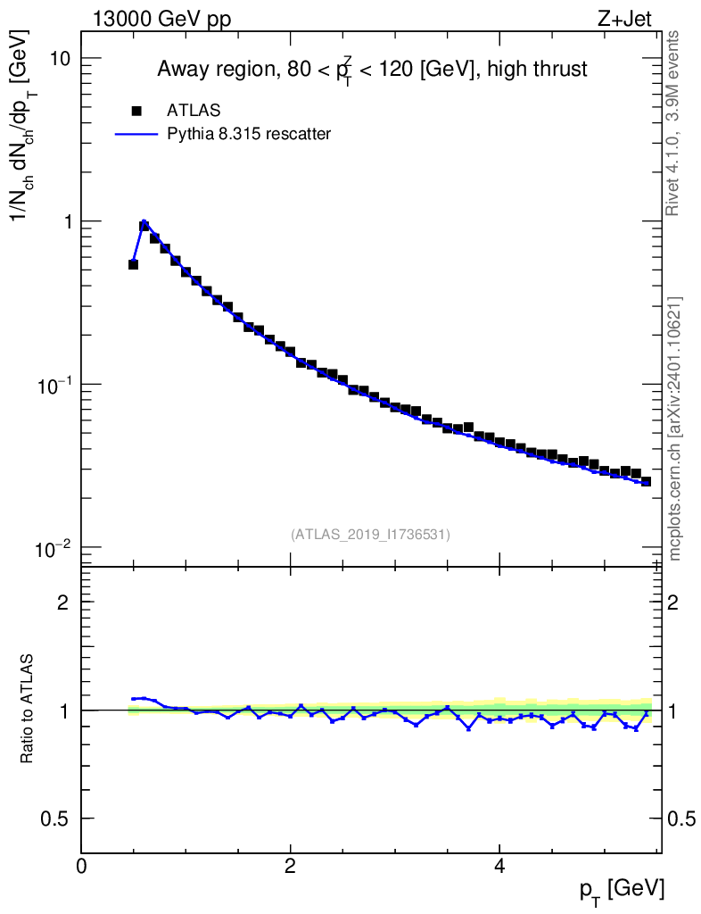 Lines: data, pythia8 8.315 rescatter |