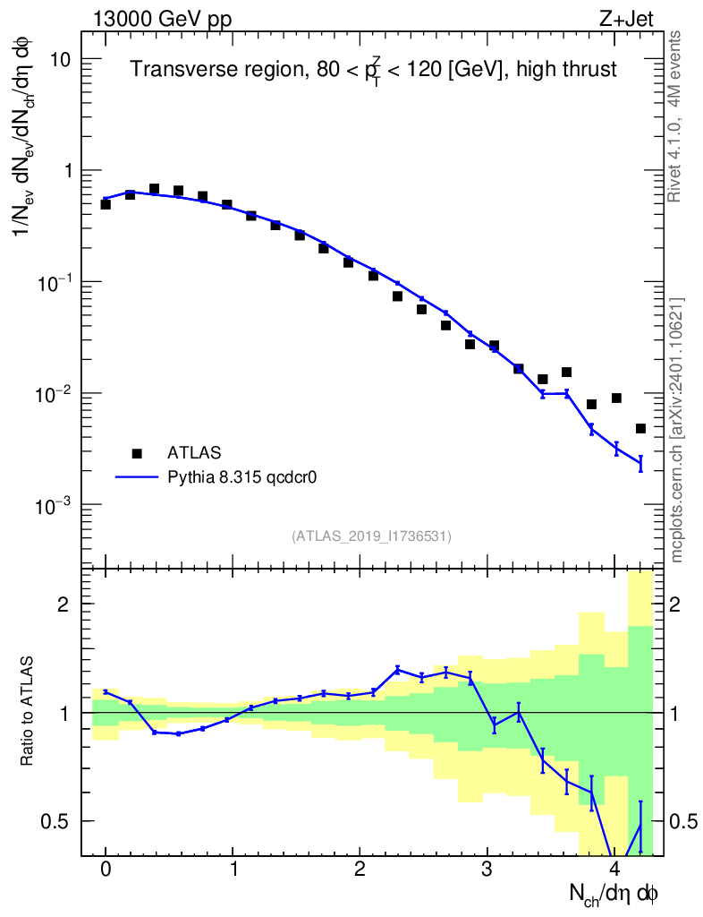 Lines: data, pythia8 8.315 qcdcr0 |