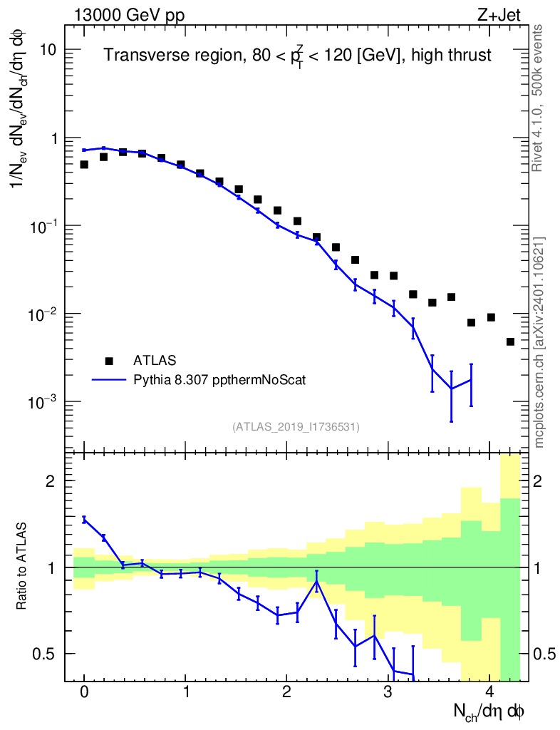 Lines: data, pythia8 8.307 ppthermNoScat |