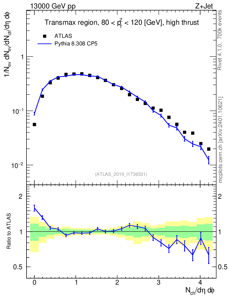 Lines: data, pythia8 8.308 CP5 |