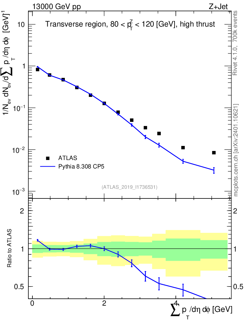 Lines: data, pythia8 8.308 CP5 |