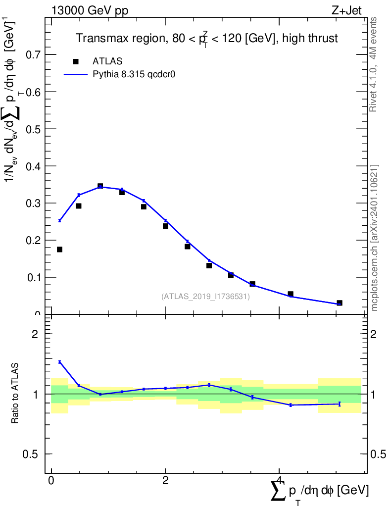 Lines: data, pythia8 8.315 qcdcr0 |