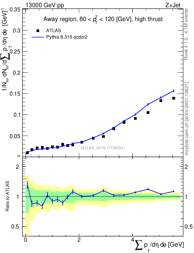 Lines: data, pythia8 8.315 qcdcr2 |