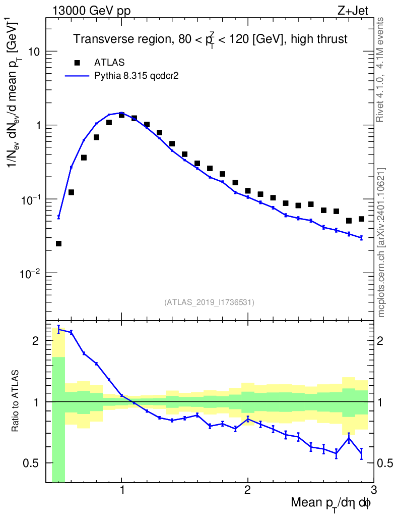 Lines: data, pythia8 8.315 qcdcr2 |