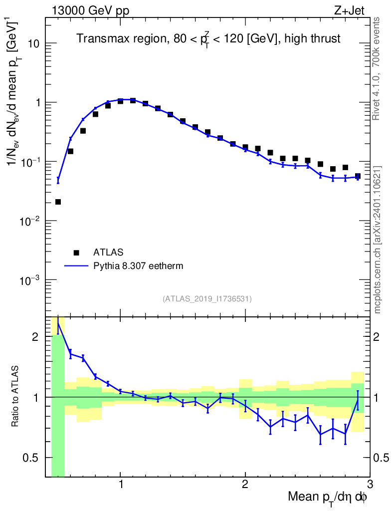 Lines: data, pythia8 8.307 eetherm |
