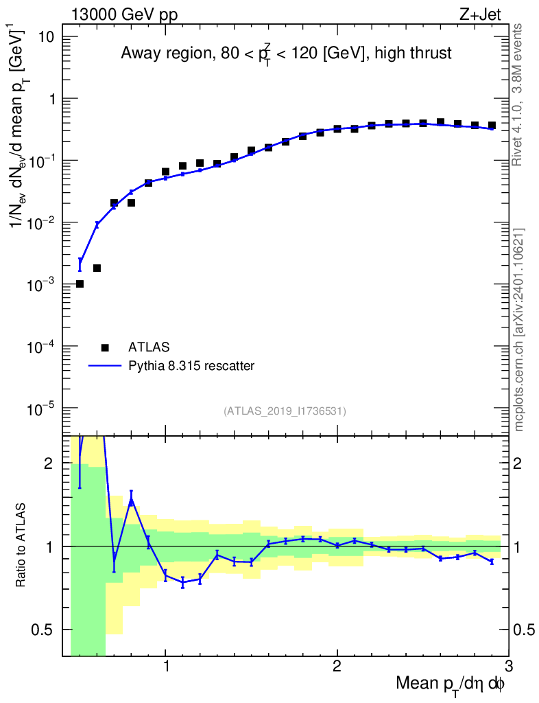 Lines: data, pythia8 8.315 rescatter |