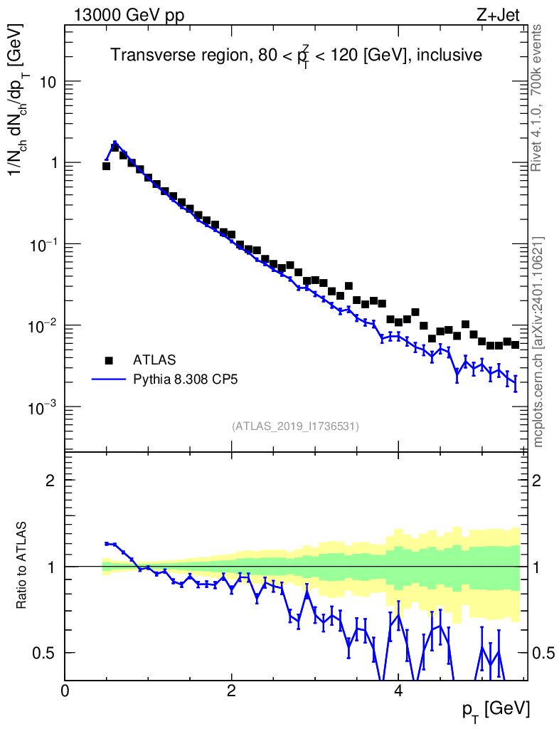 Lines: data, pythia8 8.308 CP5 |