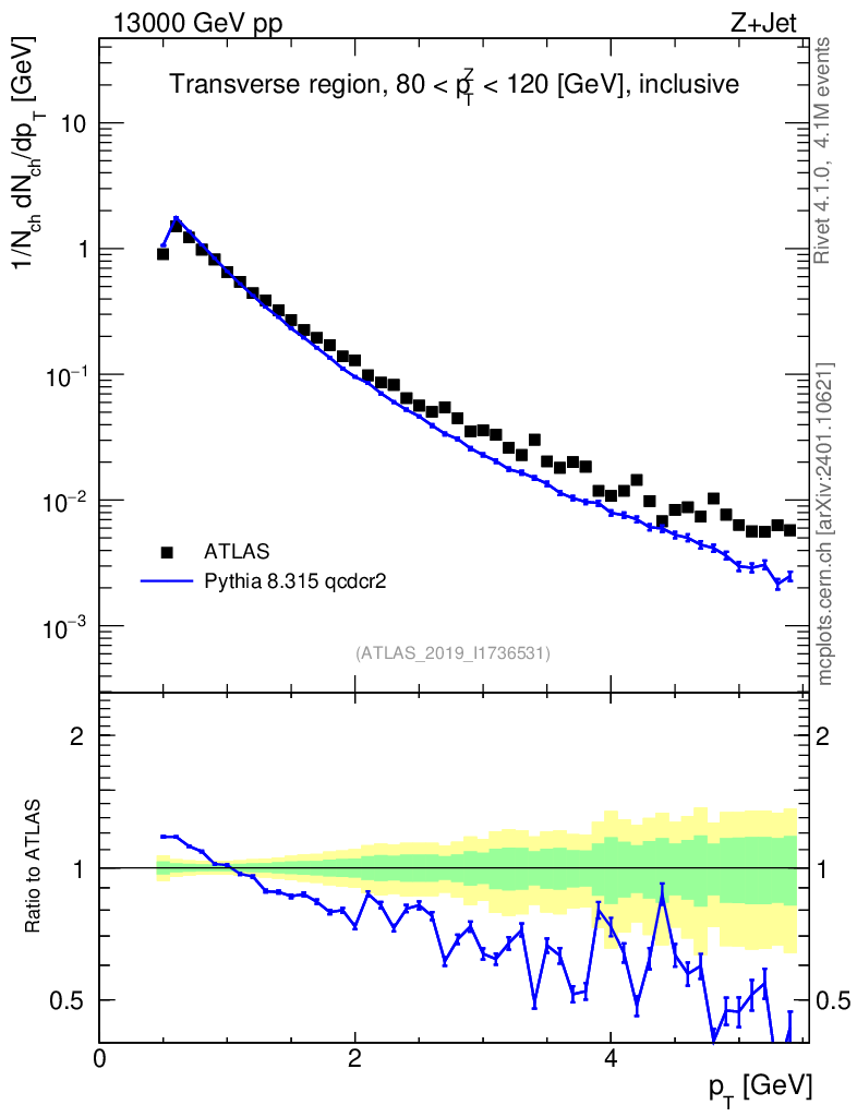 Lines: data, pythia8 8.315 qcdcr2 |