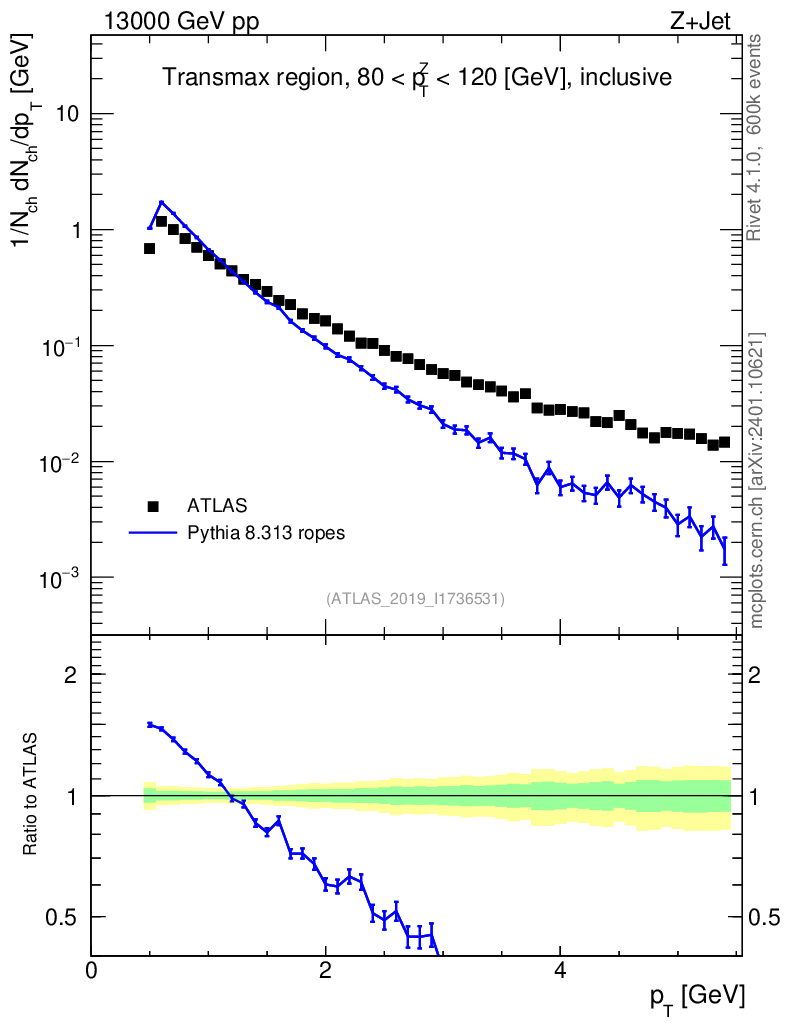Lines: data, pythia8 8.313 ropes |