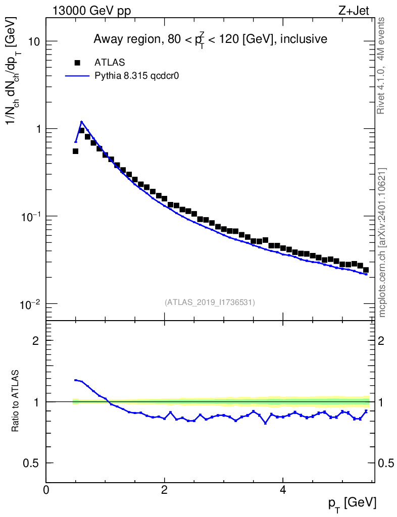 Lines: data, pythia8 8.315 qcdcr0 |