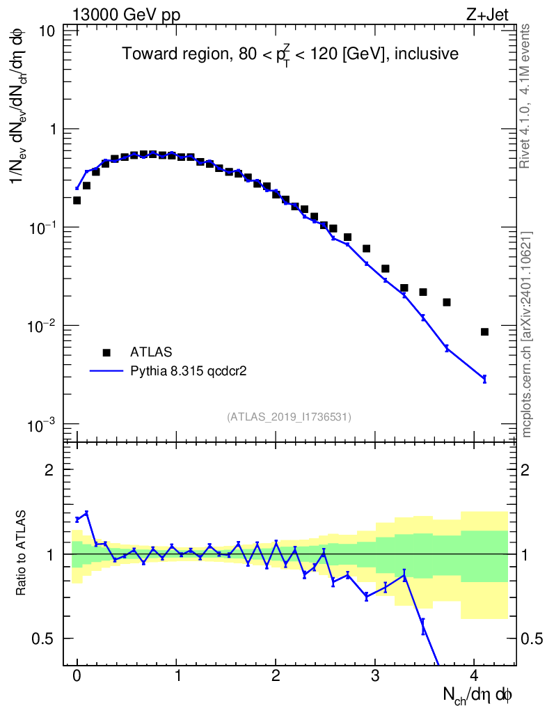 Lines: data, pythia8 8.315 qcdcr2 |