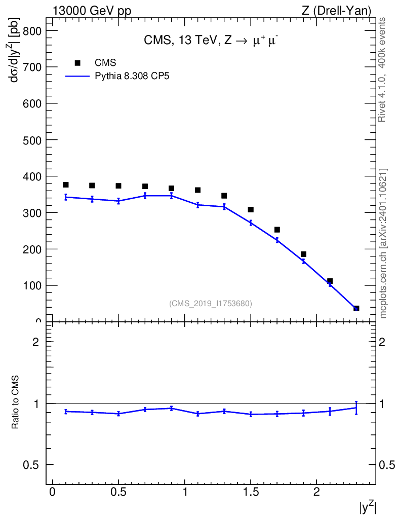 Lines: data, pythia8 8.308 CP5 |