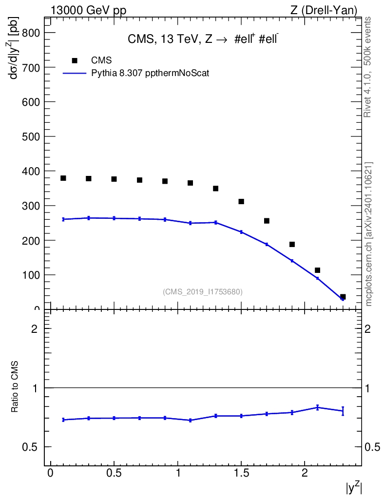 Lines: data, pythia8 8.307 ppthermNoScat |