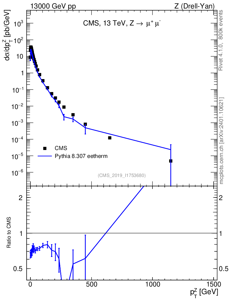 Lines: data, pythia8 8.307 eetherm |