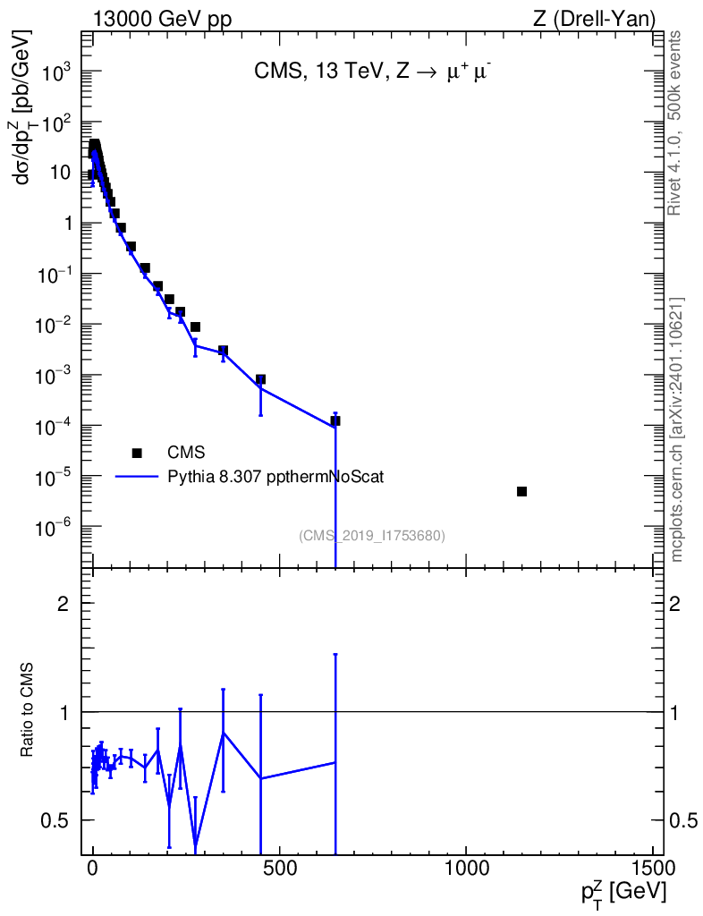 Lines: data, pythia8 8.307 ppthermNoScat |
