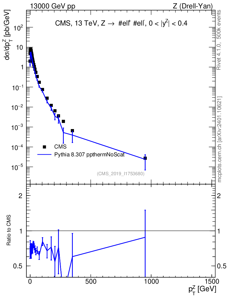 Lines: data, pythia8 8.307 ppthermNoScat |