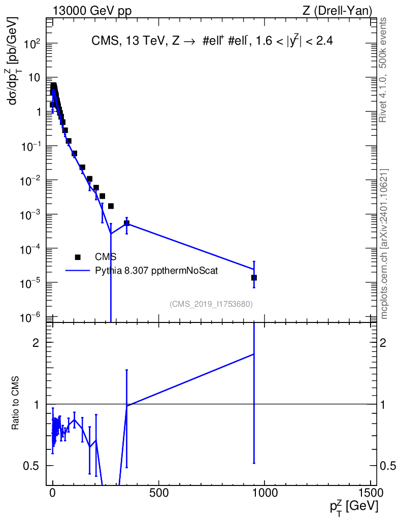 Lines: data, pythia8 8.307 ppthermNoScat |