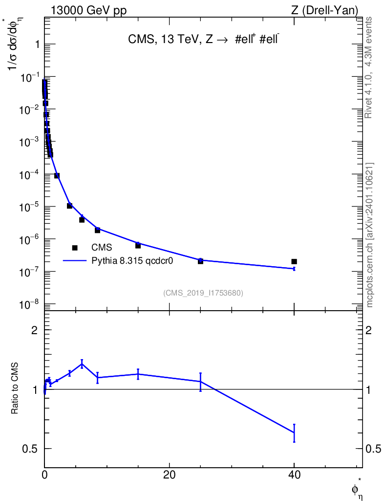 Lines: data, pythia8 8.315 qcdcr0 |