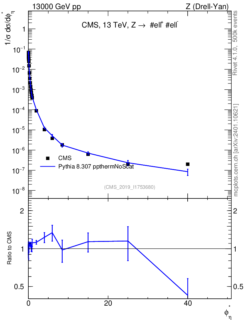 Lines: data, pythia8 8.307 ppthermNoScat |