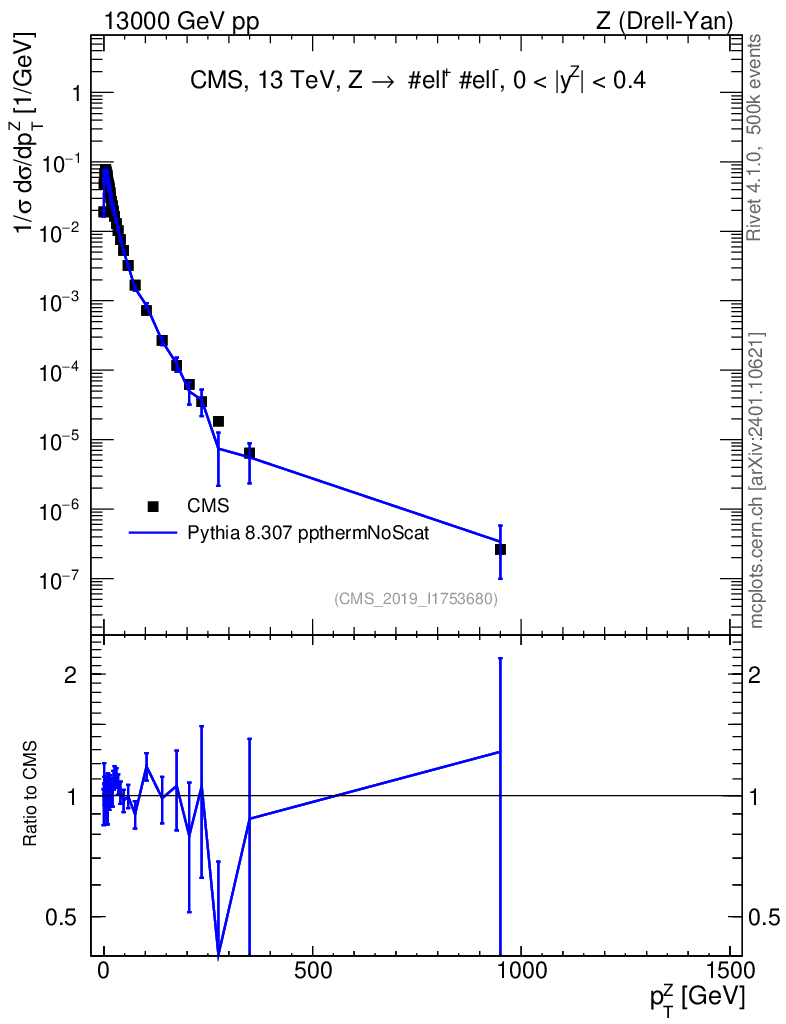 Lines: data, pythia8 8.307 ppthermNoScat |