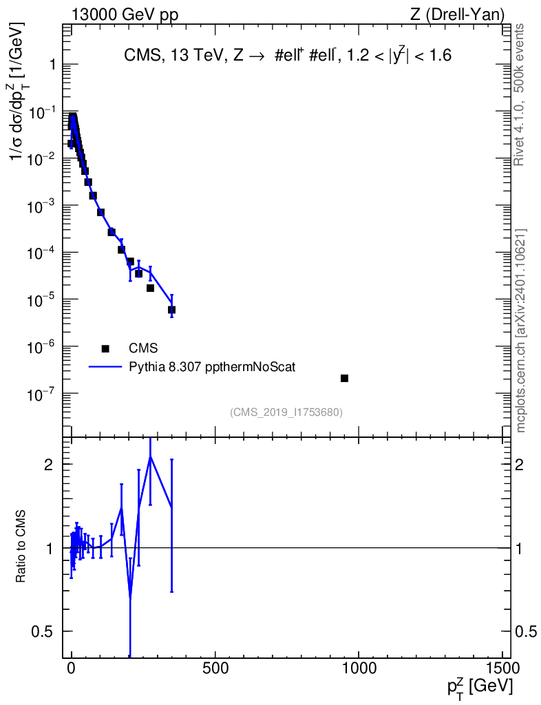 Lines: data, pythia8 8.307 ppthermNoScat |
