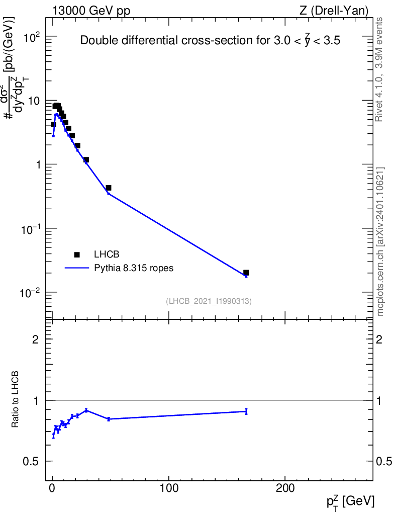 Lines: data, pythia8 8.315 ropes |