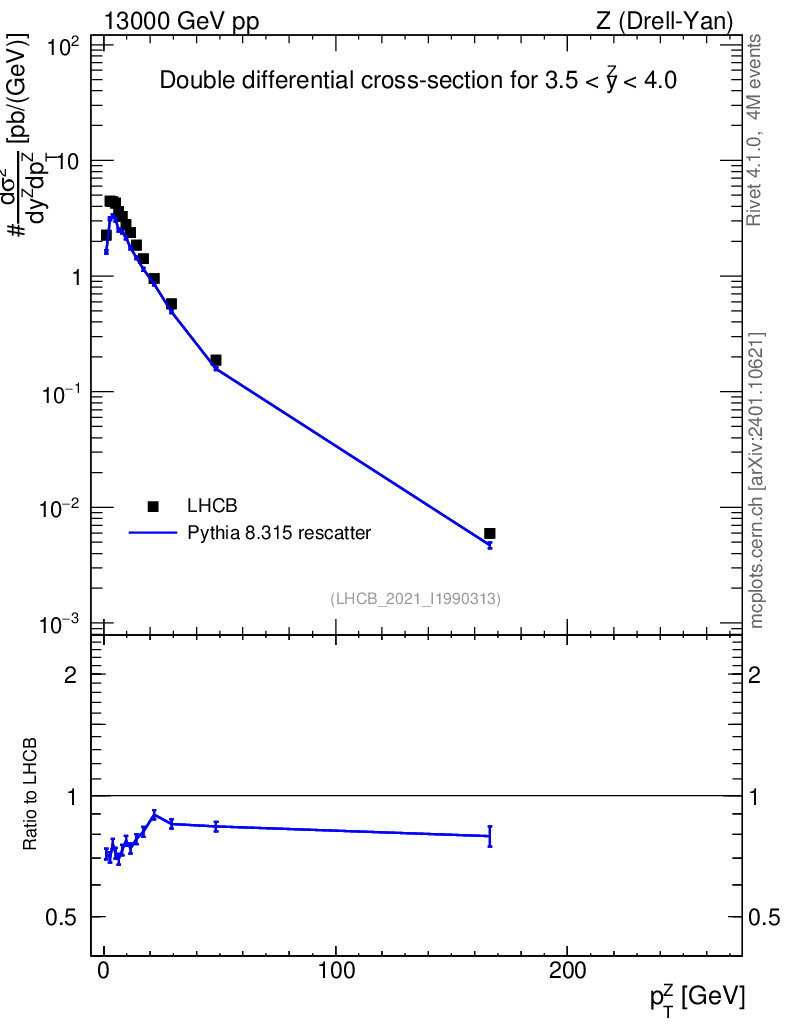 Lines: data, pythia8 8.315 rescatter |