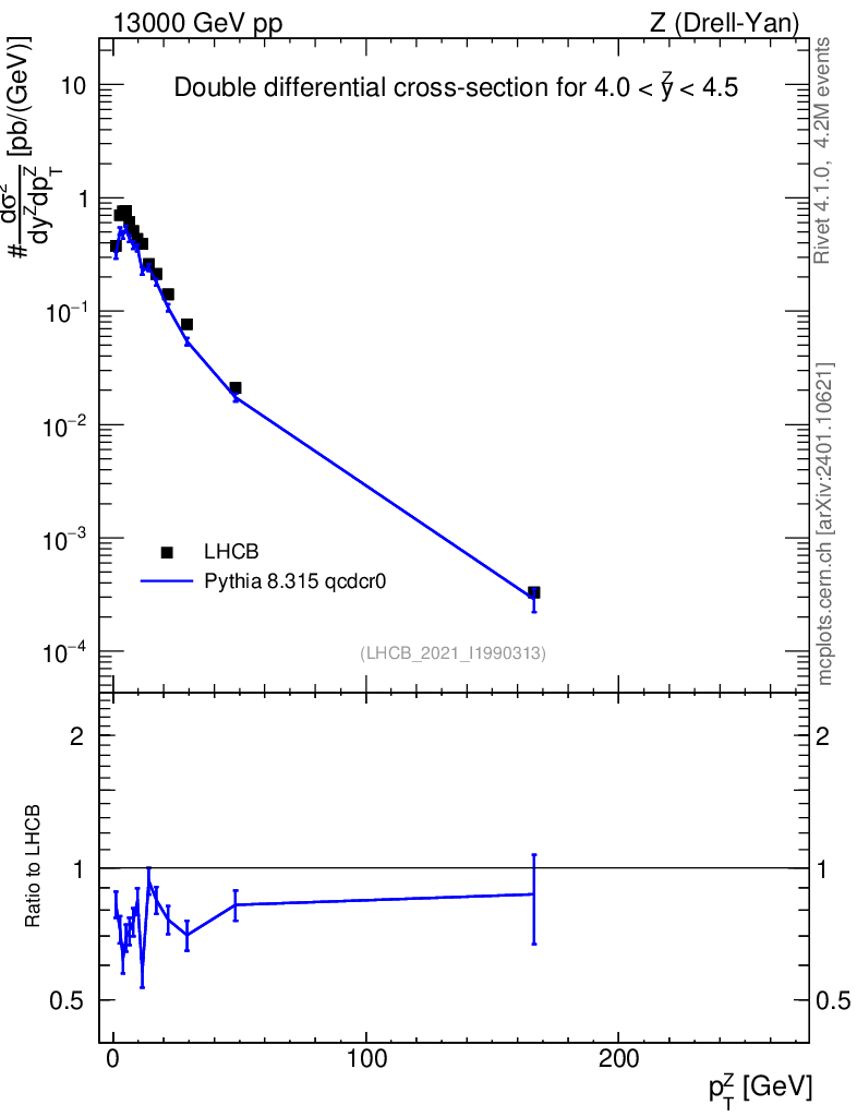 Lines: data, pythia8 8.315 qcdcr0 |