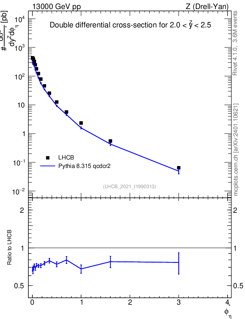 Lines: data, pythia8 8.315 qcdcr2 |