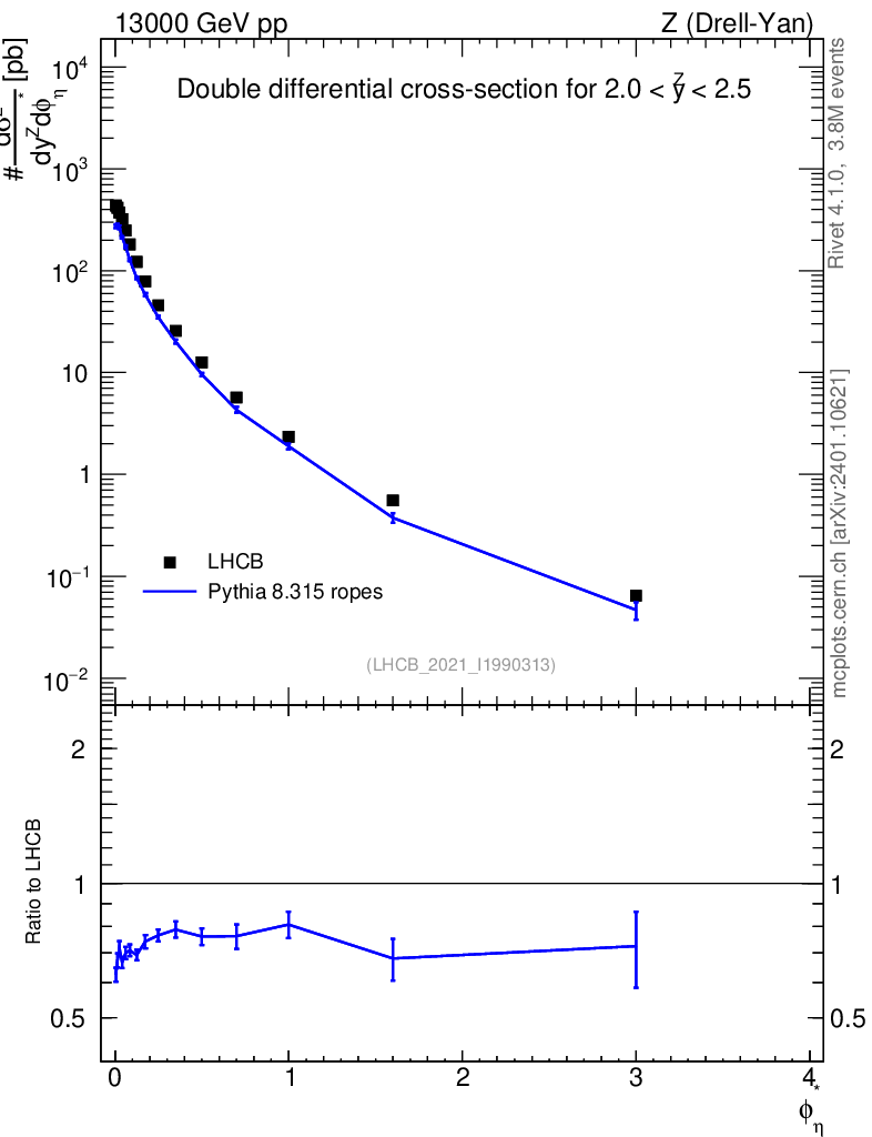 Lines: data, pythia8 8.315 ropes |