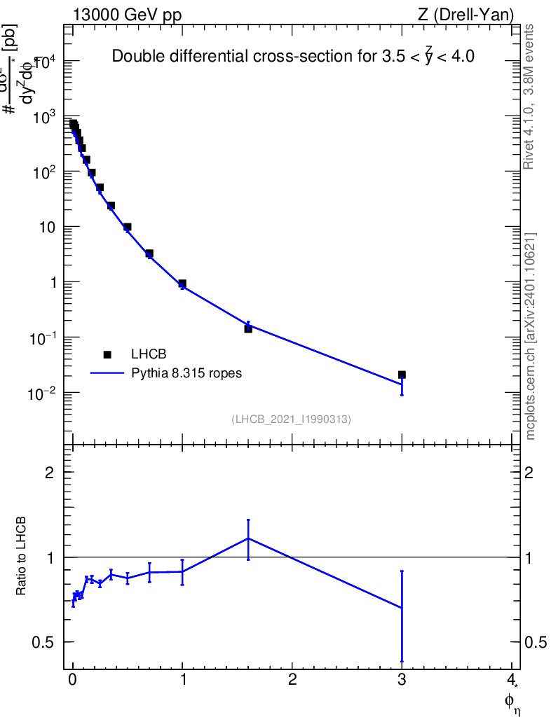 Lines: data, pythia8 8.315 ropes |