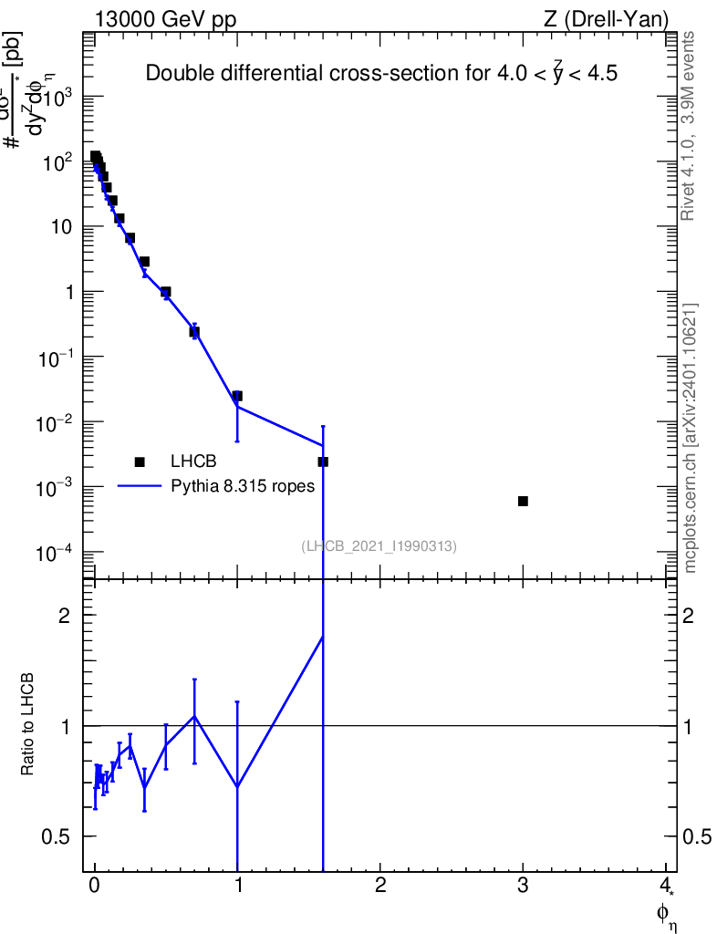 Lines: data, pythia8 8.315 ropes |