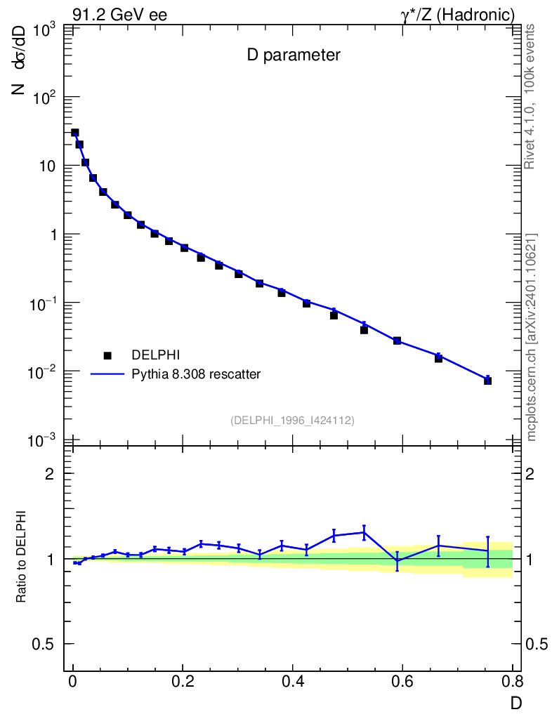 Lines: data, pythia8 8.308 rescatter |