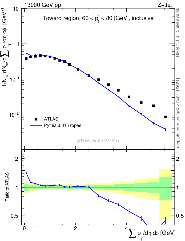 Lines: data, pythia8 8.315 ropes |