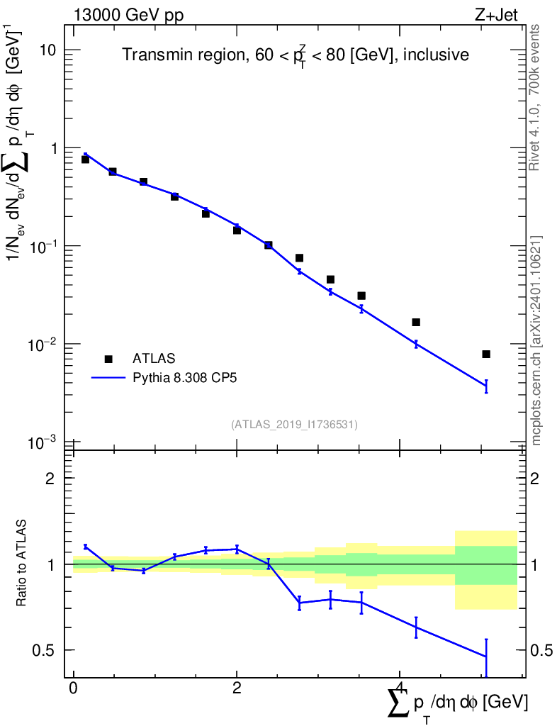 Lines: data, pythia8 8.308 CP5 |