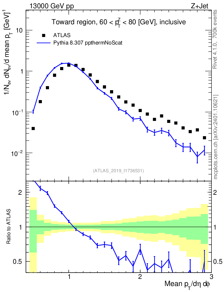 Lines: data, pythia8 8.307 ppthermNoScat |