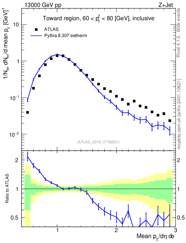 Lines: data, pythia8 8.307 eetherm |