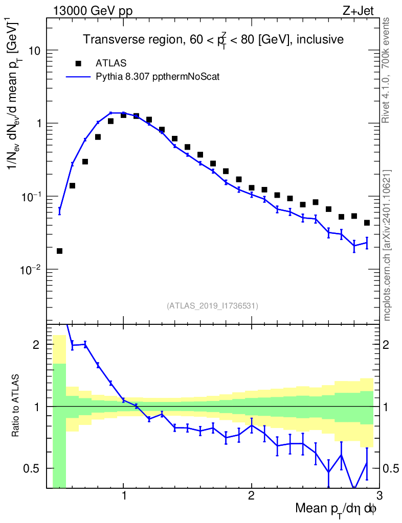 Lines: data, pythia8 8.307 ppthermNoScat |