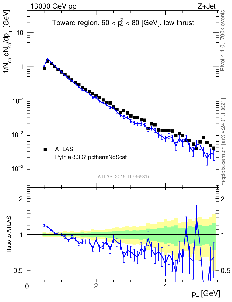 Lines: data, pythia8 8.307 ppthermNoScat |