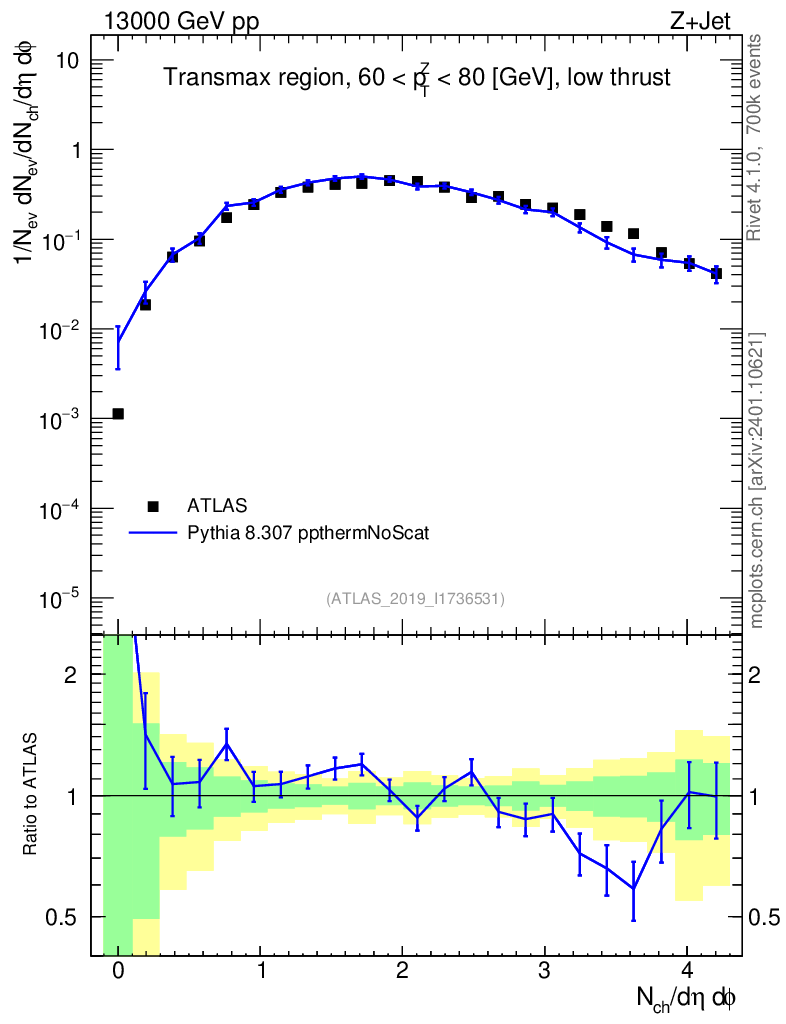 Lines: data, pythia8 8.307 ppthermNoScat |