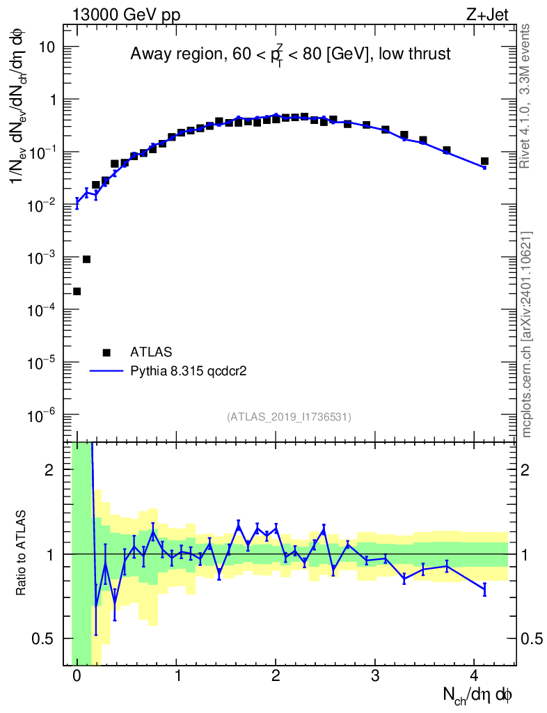Lines: data, pythia8 8.315 qcdcr2 |