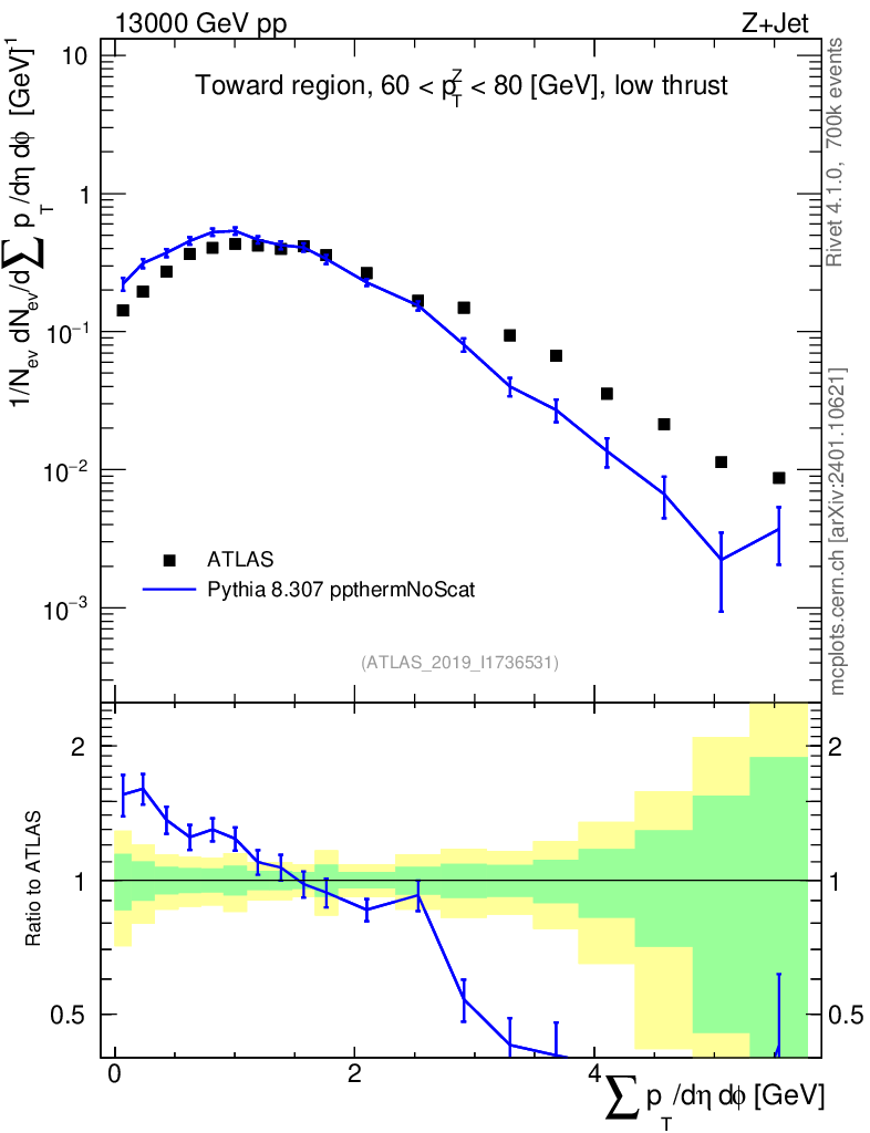 Lines: data, pythia8 8.307 ppthermNoScat |