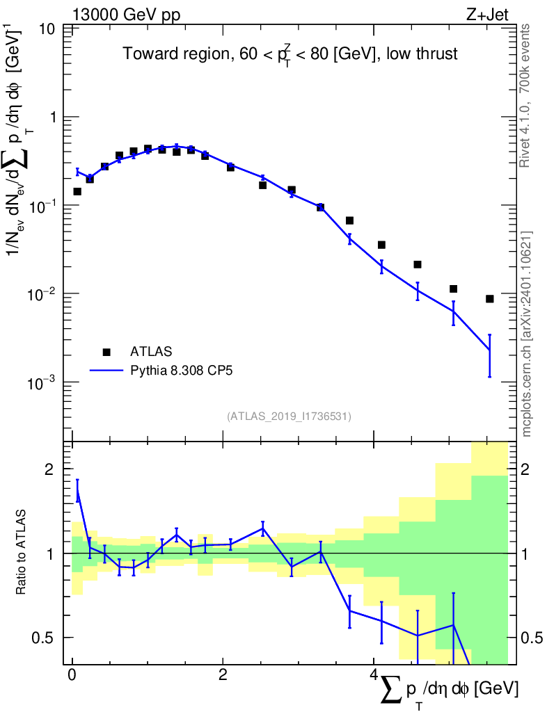 Lines: data, pythia8 8.308 CP5 |