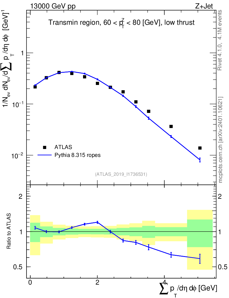 Lines: data, pythia8 8.315 ropes |