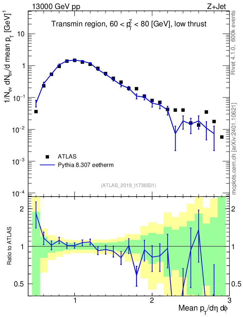 Lines: data, pythia8 8.307 eetherm |