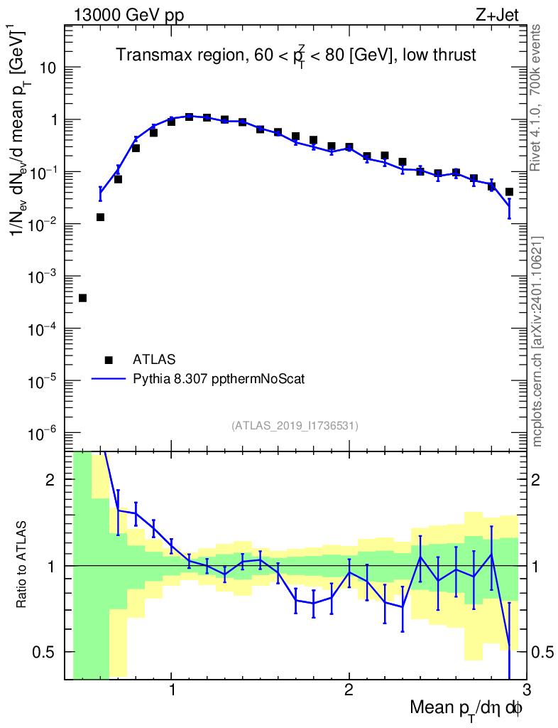 Lines: data, pythia8 8.307 ppthermNoScat |