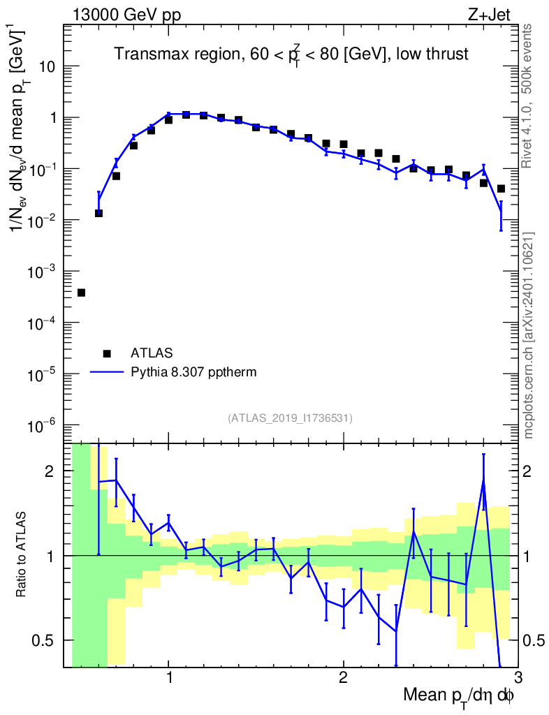 Lines: data, pythia8 8.307 pptherm |