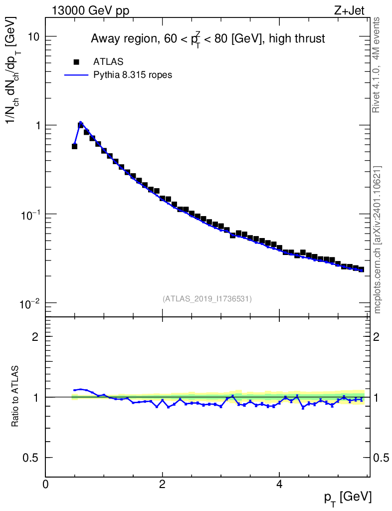 Lines: data, pythia8 8.315 ropes |