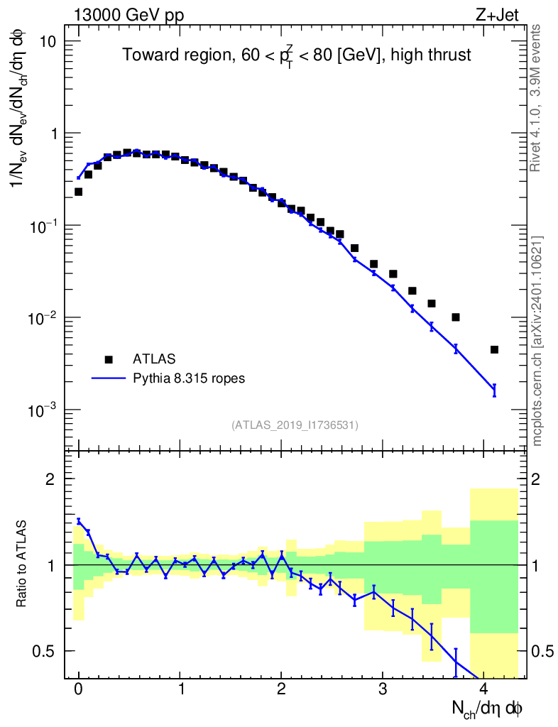 Lines: data, pythia8 8.315 ropes |