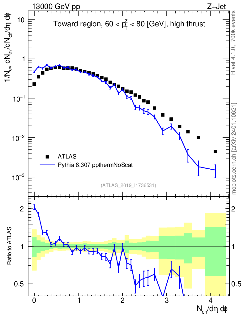 Lines: data, pythia8 8.307 ppthermNoScat |